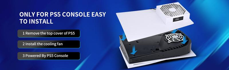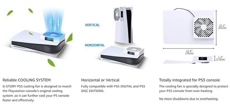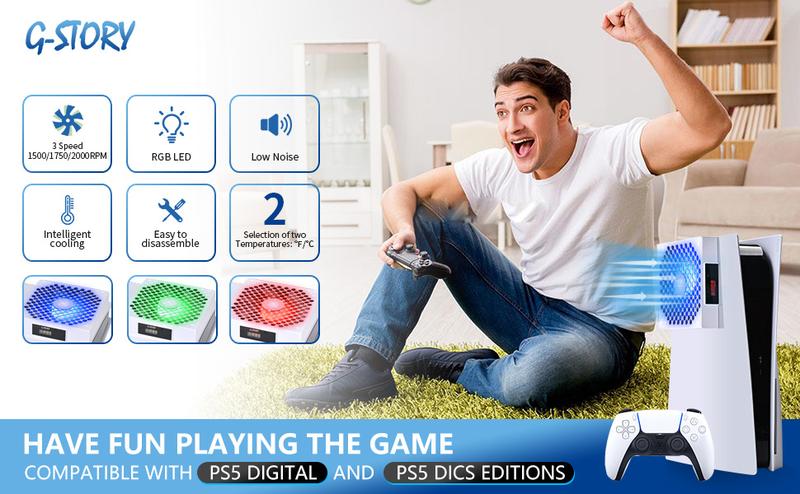 High Quality&Easy to Install: The fan is made of the same material(same high quality) as the PS5 console's original cover. Install:1. Remove the top cover of your ps5 console; 2. Fix the cooling fan on your console; 3. Connect the cable to the console. We offer 40 days free of exchange for G-STORY PS5 Cooling Fan.