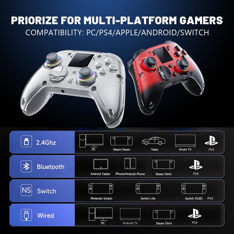 【Innovative Intelligent Interactive Screen】X01 wireless game controllers create a new era of controller screens; Equipped with a 2-inch display, no App & software needed, you can set the pc controller directly through the screen visualization, More convenient operation