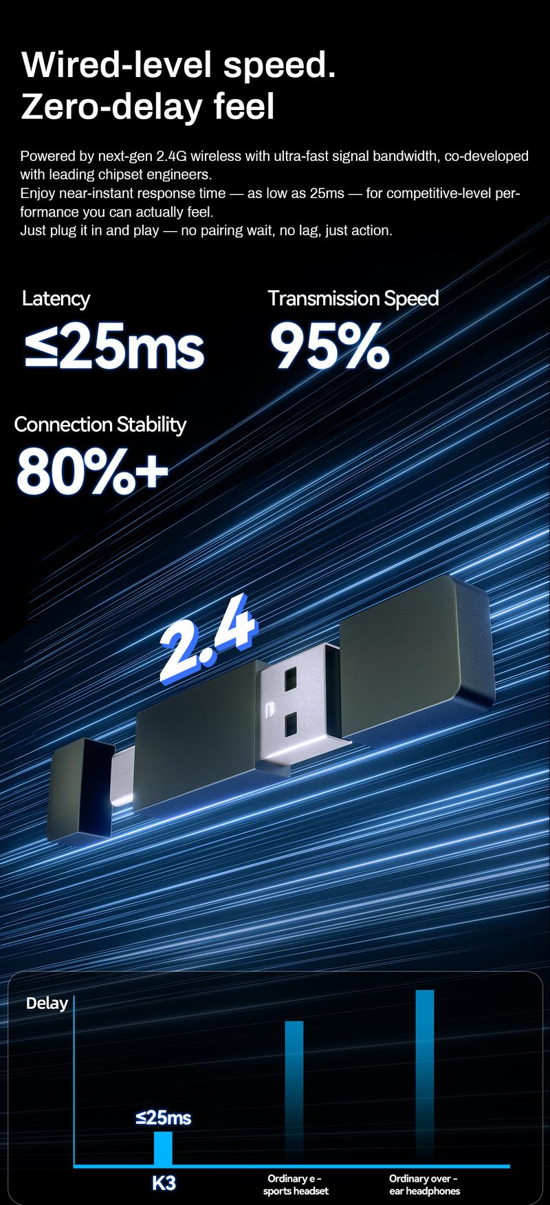 - Wireless Version: Bluetooth 5.3, stable connection up to 30+ ft.