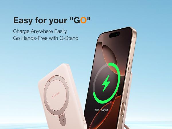 【Built-In Kickstand = Total Freedom】Introducing the O-Stand: Adjust your phone smoothly to 120° for videos, calls, or hands-free mode. It’s not just a charger—it’s your portable viewing buddy.